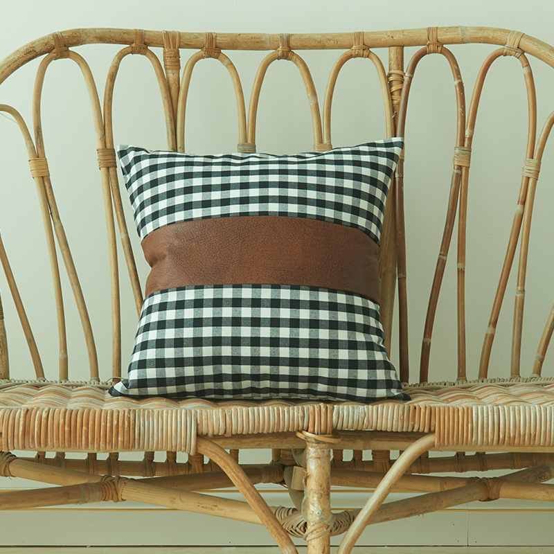 Color: black grid+brown leather
